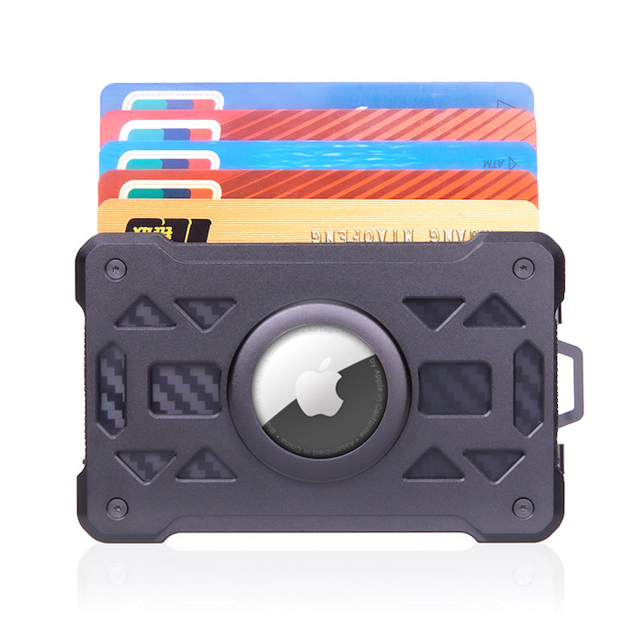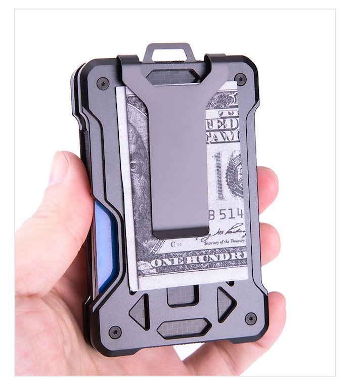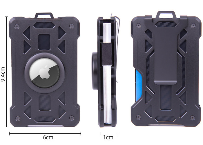 60*94*10MM Grey Customized RFID Aluminium Wallets Card Holders With AirTag Tracker And Steel Clip Images |